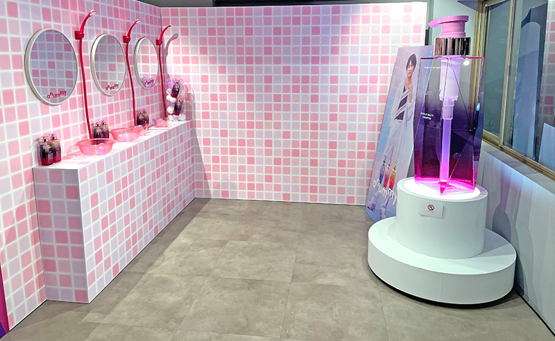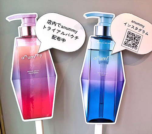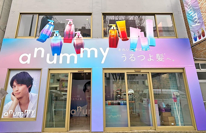 伸ばすを楽しむダメージヘアケアブランドとして、anummyの世界観をお楽しみいただける展⽰と共に、スペシャルセットの販売や購⼊特典もご⽤意しております。