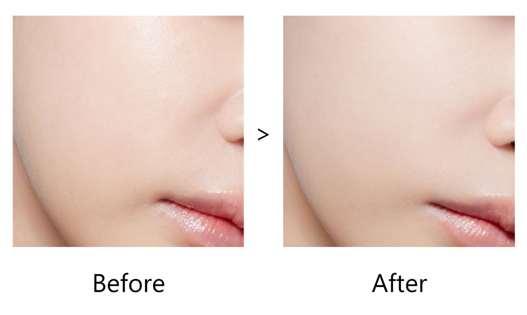 キメの細かい⽚栗粉のような粒⼦パウダー※1が⽪膚表⾯の凹凸に⼊り込み、すみずみまでなめらかにカバー。