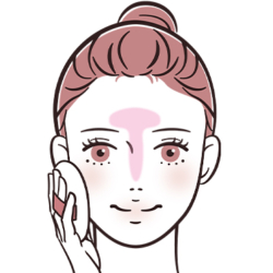 パフをお肌にポンポンとやさしくあてながら重ねる。テカリが気になる部分には重点的にのせる。
