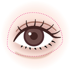 ブラシで目の周りにのせる。涙袋の下部分は避けるのがポイント。