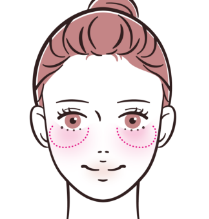 頬の中心から目尻の横に向かって、指先でなじませるように斜めに入れる。