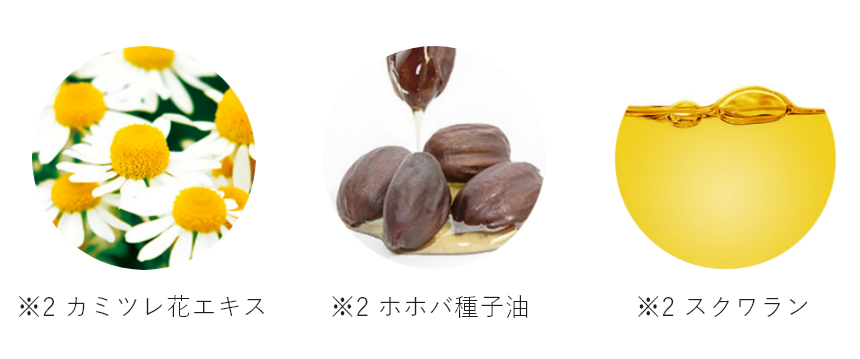 はい、カミツレ花エキス、ホホバ種子油、スクワランといった3種の保湿成分を配合しています。